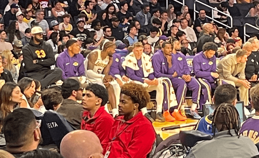 湖记:为缓解坐骨神经痛,詹姆斯观战坐在了一张高脚椅上