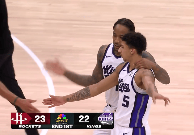手感依旧冰凉!火箭全队三分9中2,第一节结束23-22领先国王