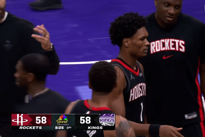 阿门下半场连拿6分得到18分,火箭58-58战平国王进入暂停