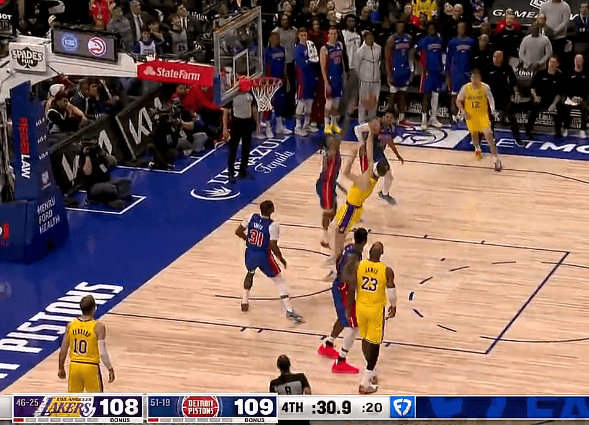 东契奇三分投进首节砍下13分,湖人全队19分、活塞拿到16分
