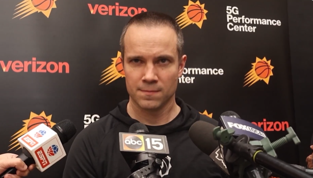 狄龙接球三分出手,投进太阳今年季后赛首个三分球