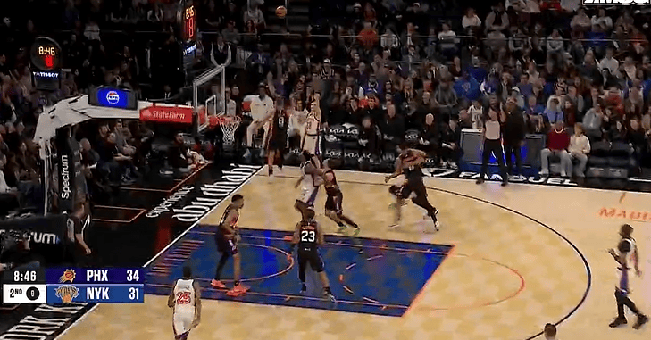 兰德尔全场13投仅4中,三分2中0得到17分10篮板2抢断2盖帽