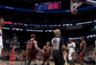 特雷-琼斯反击上篮造犯规两罚全中,公牛领先奇才20分