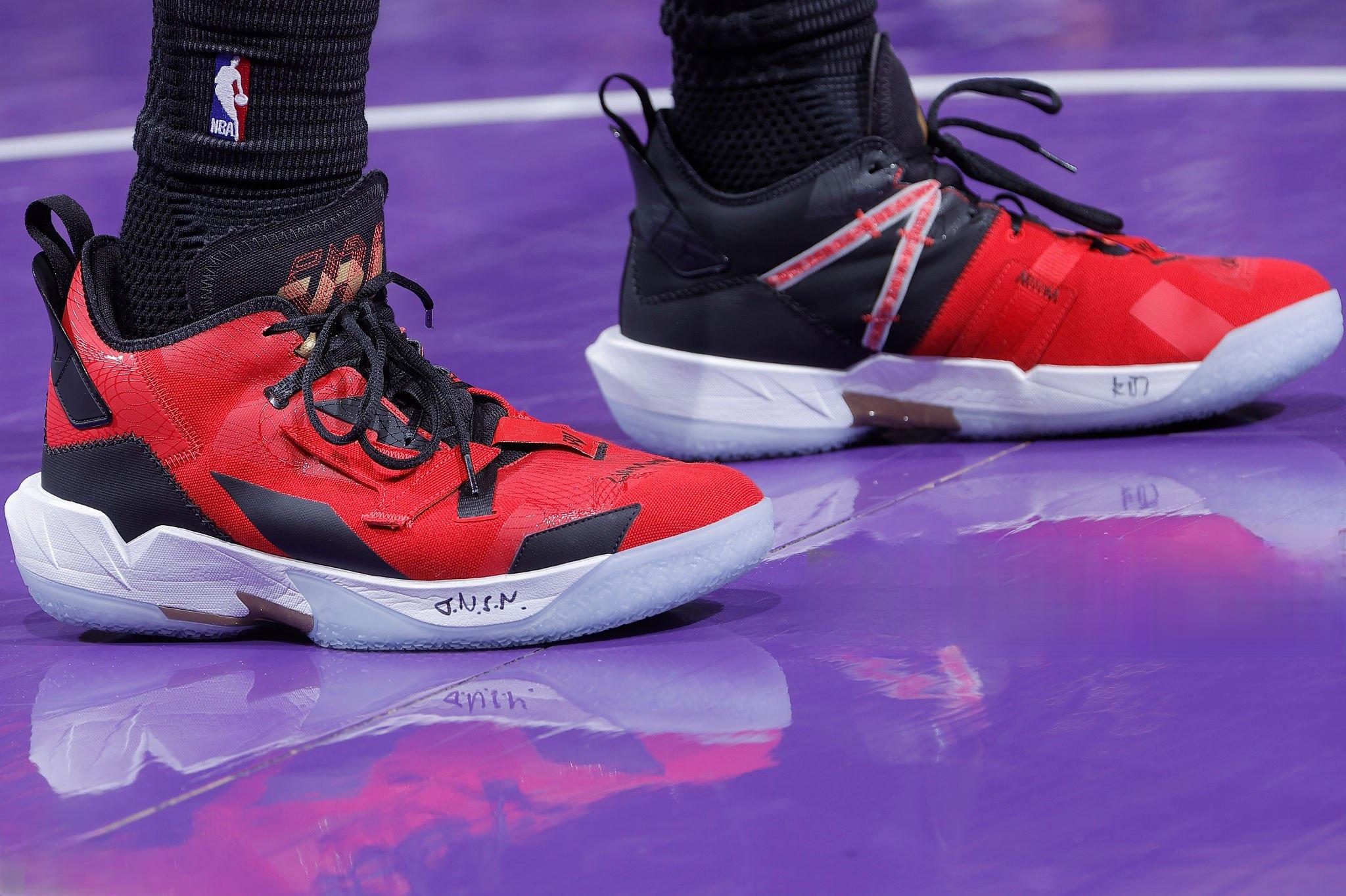 威斯布鲁克穿着WhyNot4,得到22分2篮板7助攻2抢断1盖帽