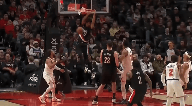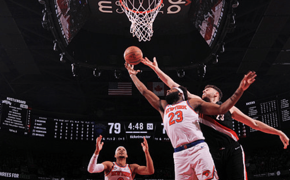 阿夫迪亚突破造成哈特切球打手犯规,尼克斯挑战成功