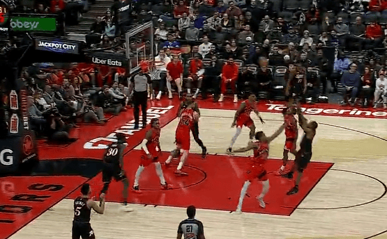 亚历山大上篮被威金斯大帽扇飞,首节5投0中暂未有得分进账