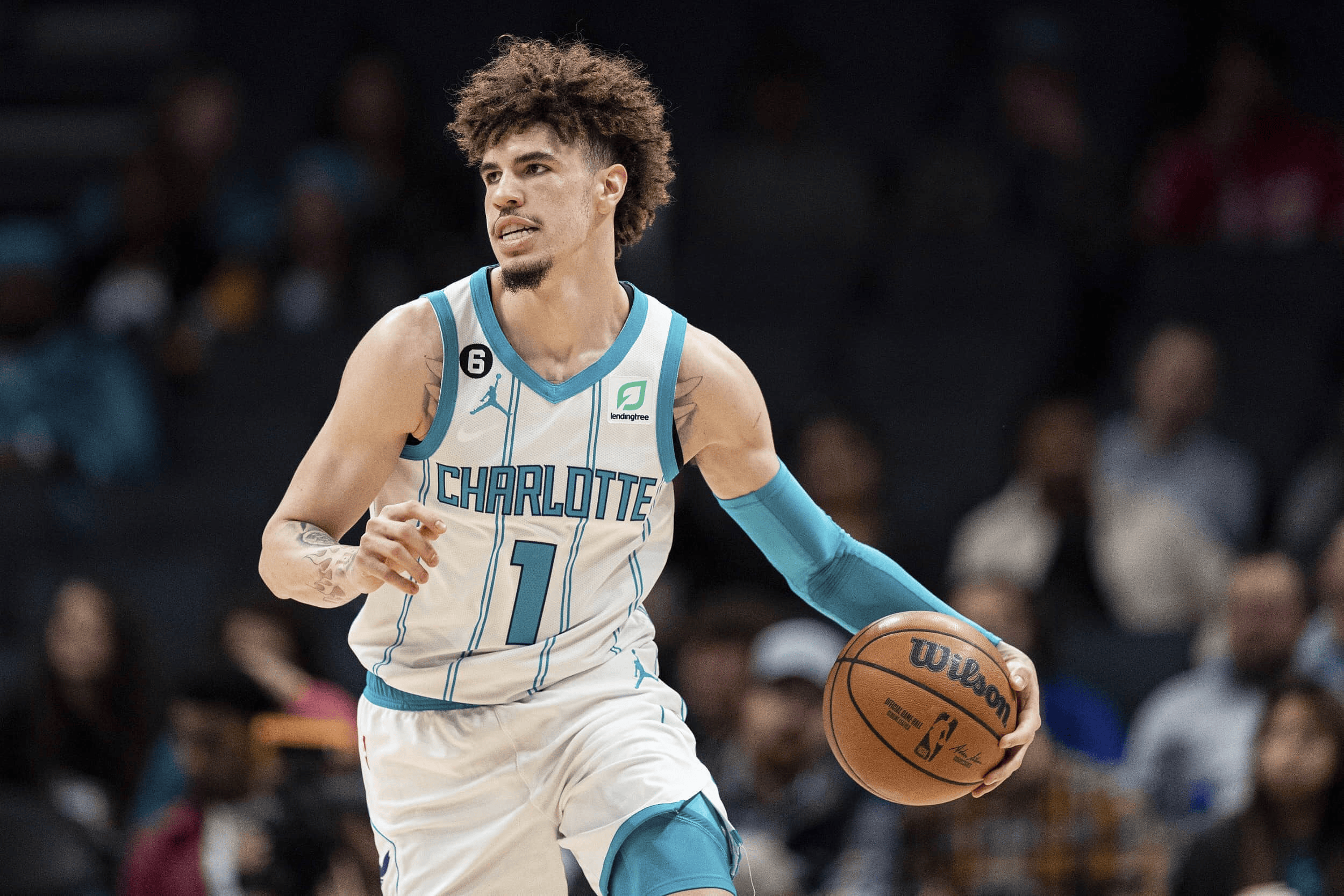 拉梅洛鲍尔全场16投6中,三分6中1得到14分2篮板5助攻