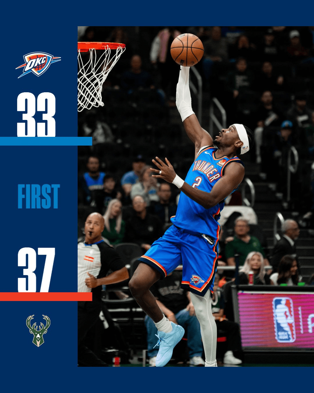 亚历山大首节投篮7中5,三分3中1得到14分3助攻3抢断