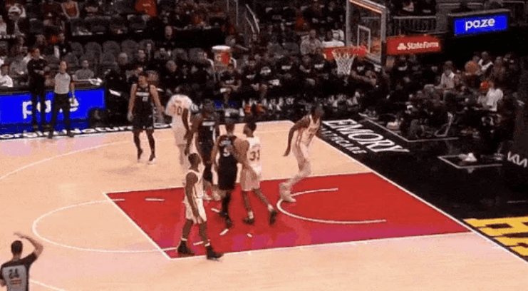 鲍威尔接球压哨三分强投投出三不沾,目前13中4得17分