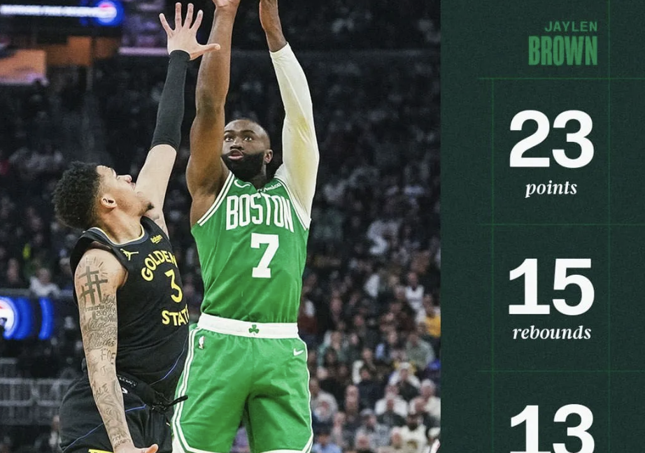 凯尔特人官方:今日轻松砍下三双的杰伦-布朗当选为本场最佳