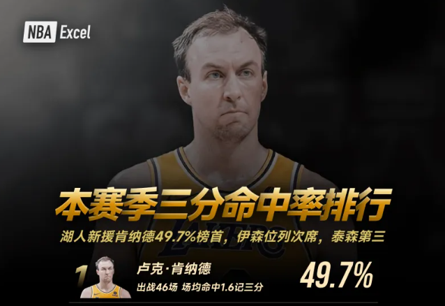 湖人三分35%联盟第22位,算上肯纳德三分能提升至36%第14位