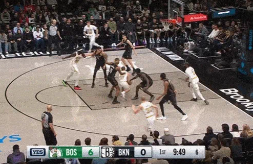 杰伦-布朗半场13中4,三分4中2得到12分3篮板2助攻