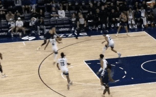 伯纳德底角接球空位三分再中,森林狼半场已领先广州32分