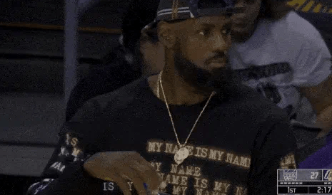 詹姆斯身着时尚服饰坐在替补席,表情轻松观战季前赛