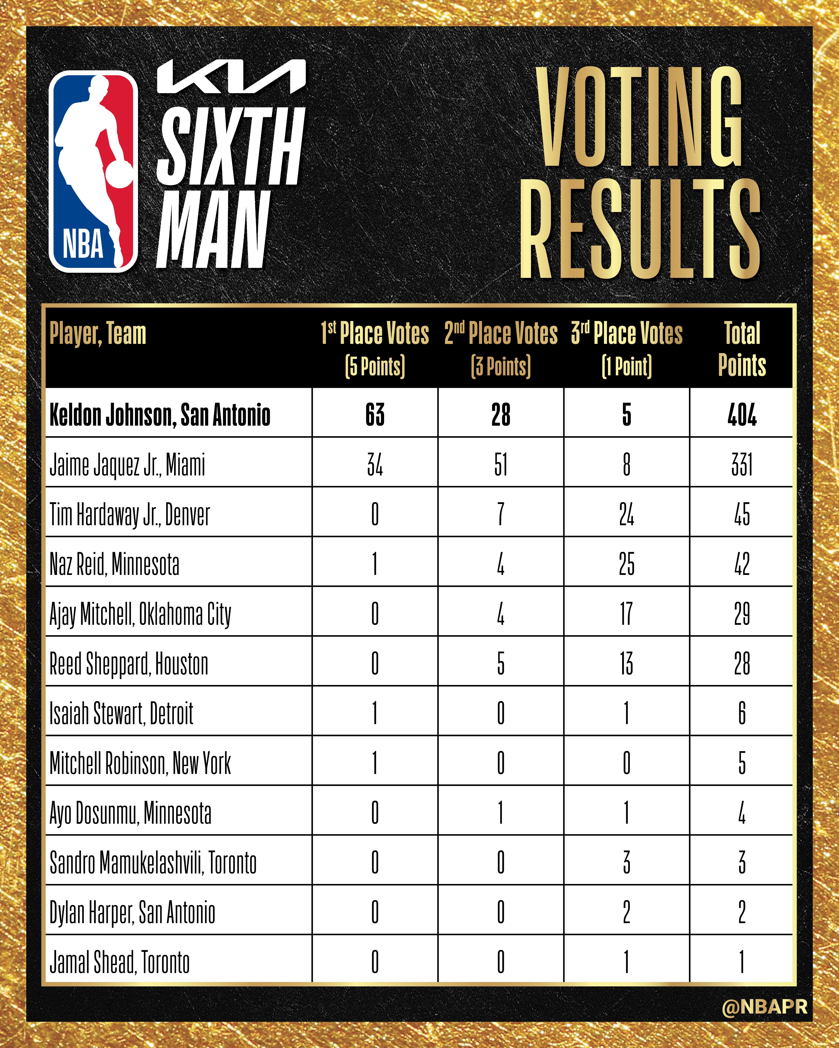 马刺队史共四名不同的球员当选DPOY,联盟历史最多