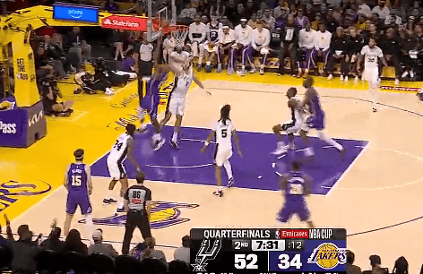 尚帕尼连续三分投进,马刺第二节一波8-0领先17分打停湖人