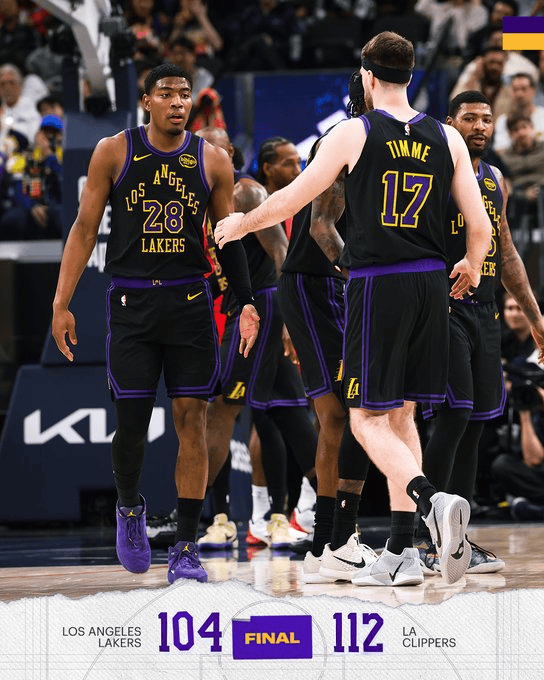 湖人官方发布终场海报:客场不敌快船,战绩来到26胜17负