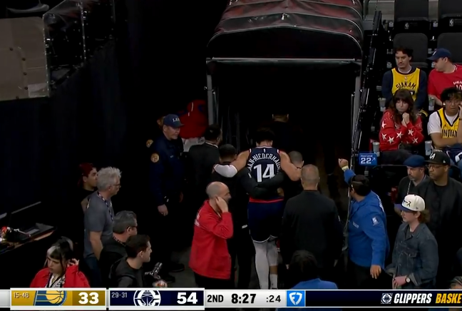 尼德豪泽伤退快船7分钟仅拿5分,步行者打出14-5追至12分