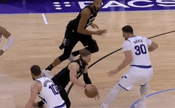 努尔基奇防守中张开长臂,一掌扇掉迪文琴佐面具