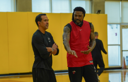 队魂!哈斯勒姆近日拜访热火训练馆,并与斯波亲切交流