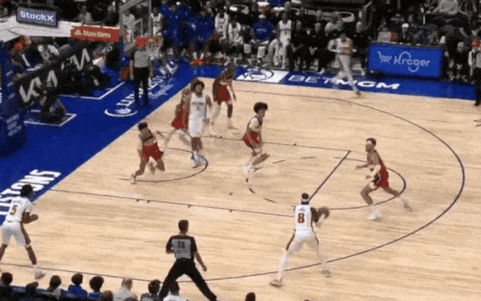 坎宁安突破分球助攻勒韦尔三分命中,目前已8助攻&0失误