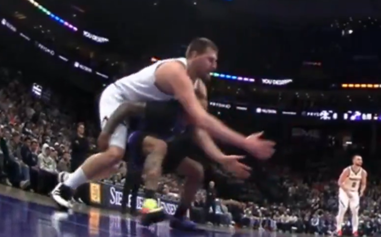 美媒调侃约基奇压乔治动作:约基奇在球场上骑起了马😭