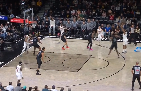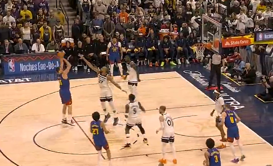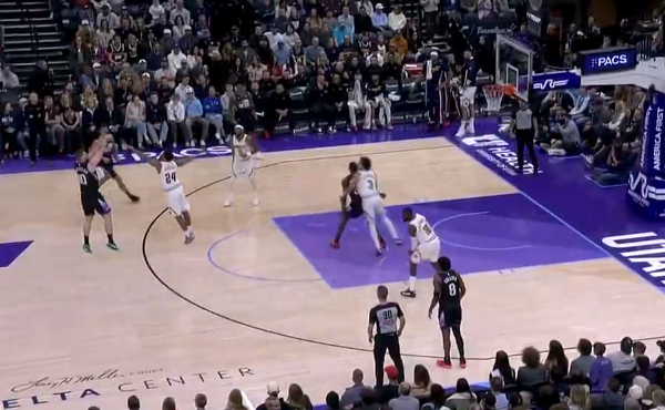 米哈伊柳克追身三分投进,爵士首节34-33领先掘金