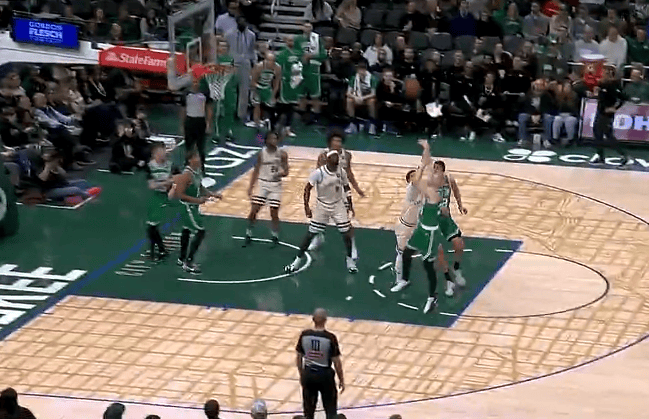豪瑟自投自抢极限抛射压哨命中,绿军首节以30-20领先雄鹿