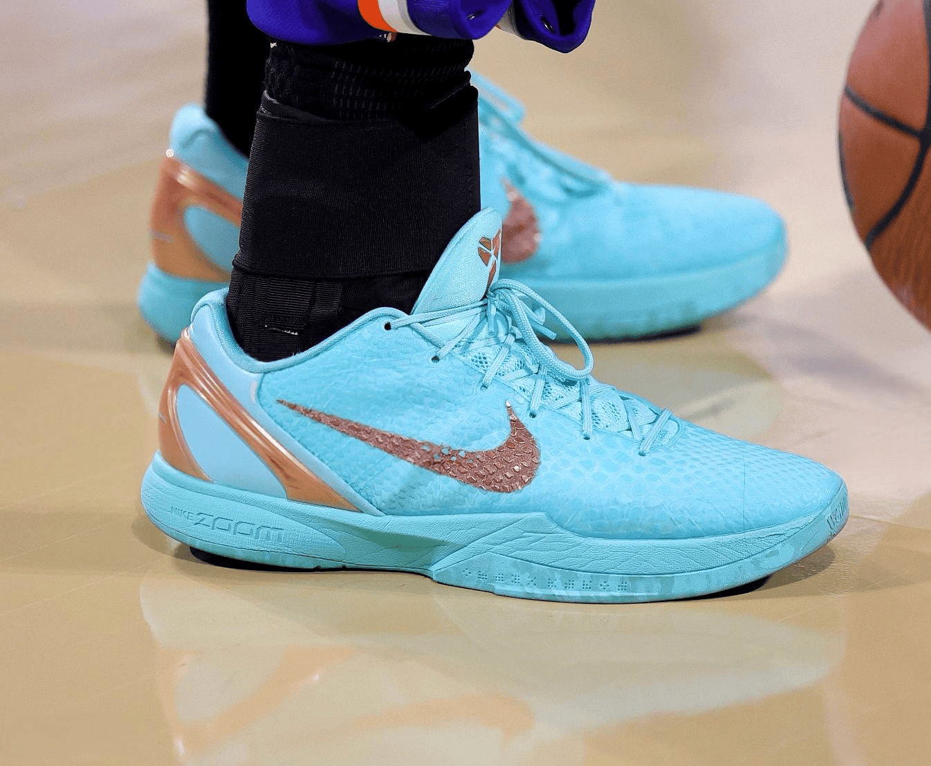 布伦森穿着自由女神配色科比6,得到12分6篮板8助攻1抢断
