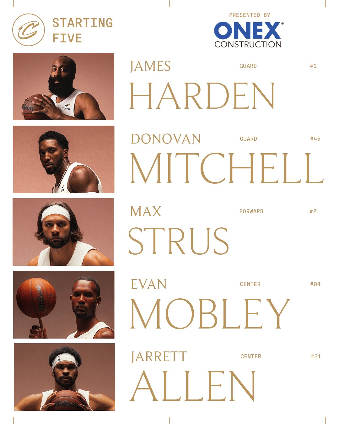 骑士首发:哈登、米切尔、斯特鲁斯、莫布利、阿伦