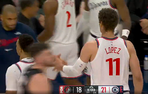 大洛佩斯连突带投开局拿到9分,快船21-18打停开拓者