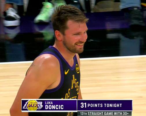 得分手!东契奇已连续13场砍下30+,独居湖人队史第四位