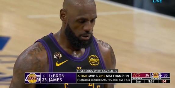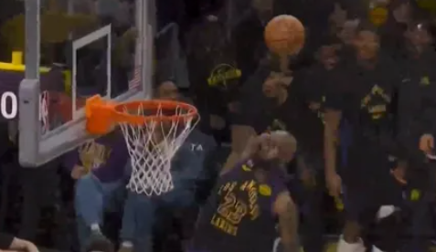 詹姆斯开局追帽米切尔,随后中距离跳投命中湖人首分
