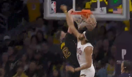 虎扑 62回复卡马拉空中摘板抡臂砸扣可惜扣飞,开拓者还领先快船10分