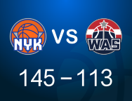 [赛后]奇才113-145尼克斯,吉尔18分5板3断,唐斯26分16板3助
