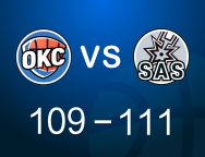 [赛后]马刺111-109雷霆,瓦塞尔23分5板4助,亚历山大29分4板5助