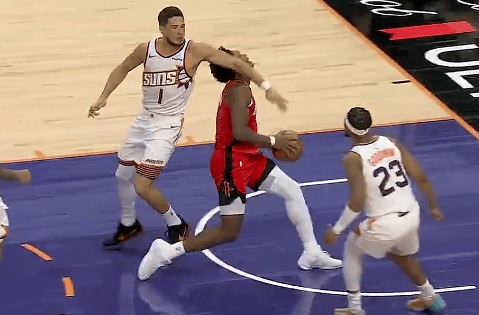 布克劈头盖脸拉拽阿门被吹一级恶意,后者空中失衡还打成2+1