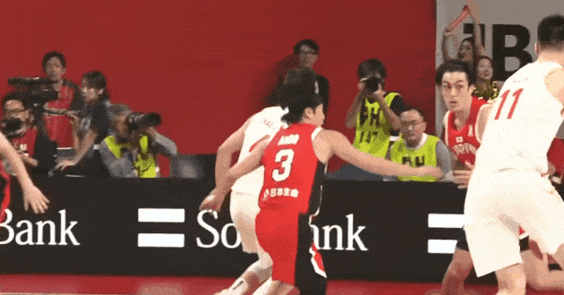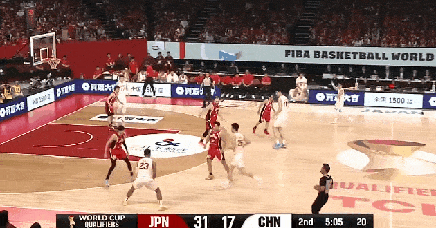 贺希宁超远投进中国男篮首个三分,目前追至20-31落后日本