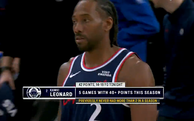 伦纳德三月数据:场均29.6分6.4篮板4.1助攻,取得6胜1负