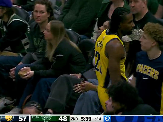 内史密斯一节半时间8投7中砍下24分,步行者客场领先9分