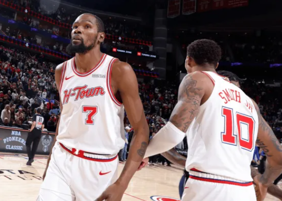 哑火!火箭首发得分均上双,但全队最高分仅为杜兰特的15分