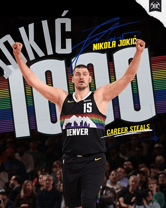 全能!掘金官方:又一里程碑,祝贺约基奇抢断数达到1000记
