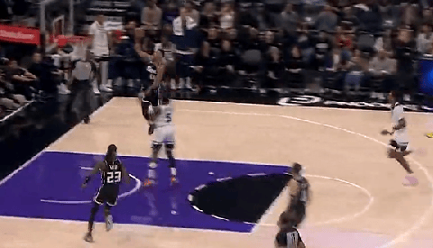 坎宁安推进攻守转换,行进间击地妙传杜伦单手扣篮终结