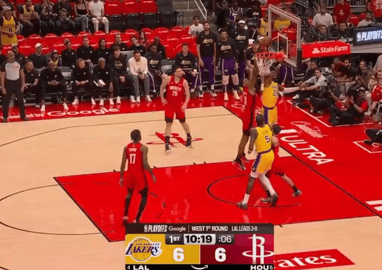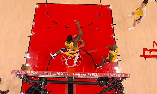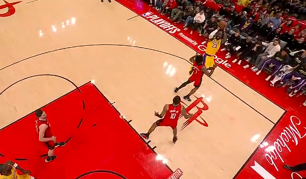 詹姆斯自投自抢打进砍下21分7篮板7助攻,湖人领先火箭7分