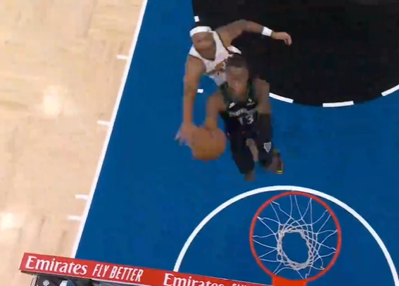 艾顿下顺接球抛投,贾巴里-史密斯飞身完成排球大帽扇飞