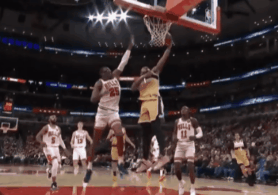 约基奇轻松转身过掉尤班克斯,垫步起飞上演双手挂框飞扣