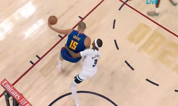 约基奇左手勾射命中单节14分,已经砍下20分11篮板7助攻