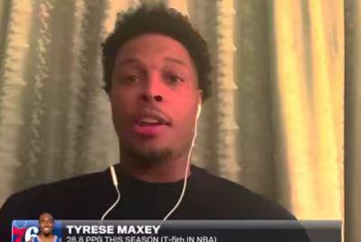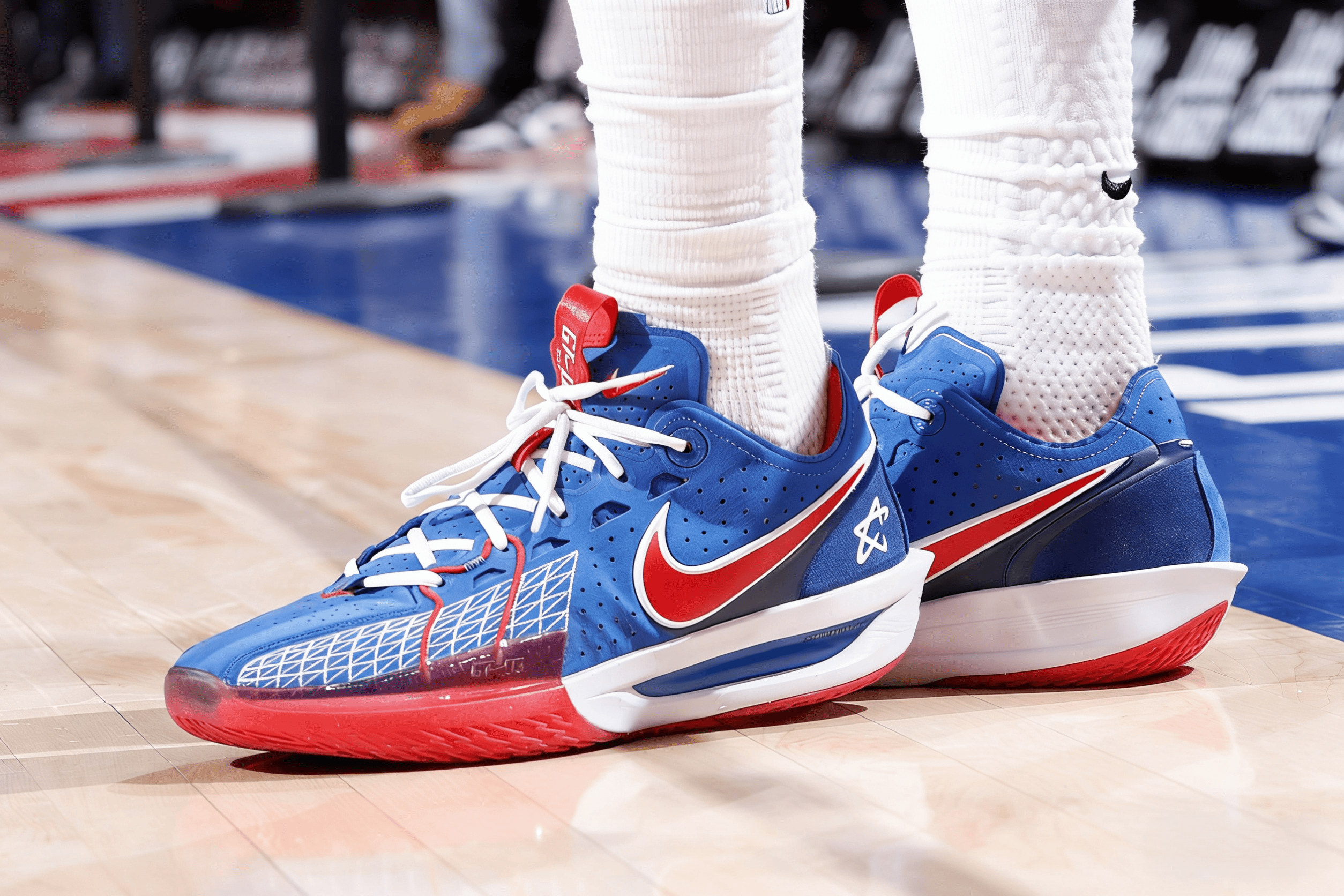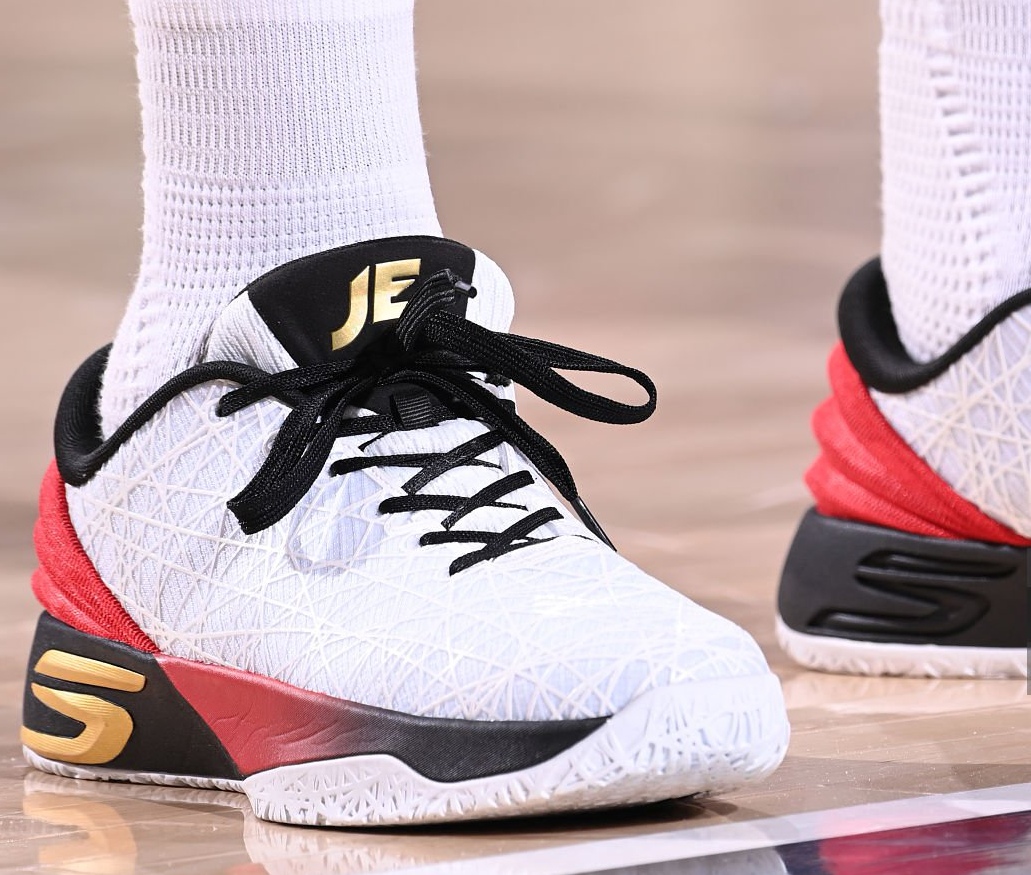 恩比德穿着斯凯奇JE1,空砍35分7篮板7助攻2盖帽