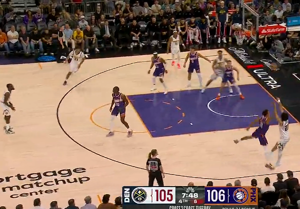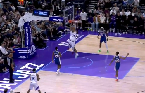 虎扑莫布利旱地拔葱暴力补扣得手,目前个人5投全中得到10分5板