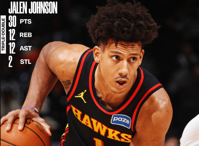 杰伦-约翰逊本赛季已经4次三双,此前四个赛季仅拿到2次三双